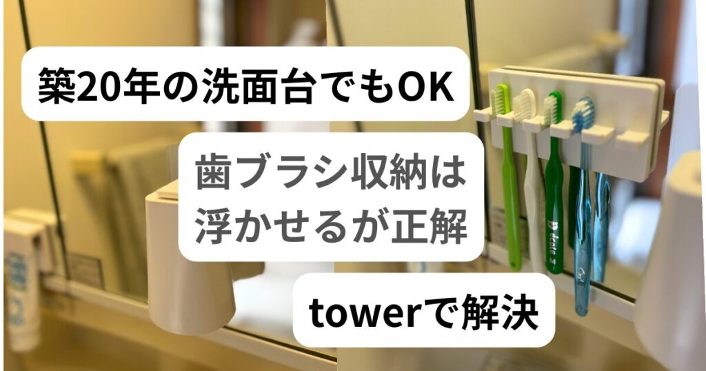 築20年の洗面台でもスッキリ|歯ブラシ収納は“浮かせる”が正解だった【towerレビュー】