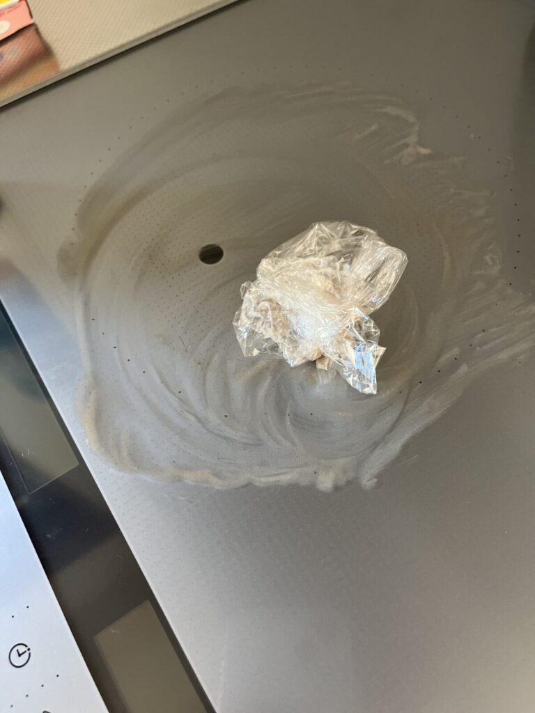 準備物はラップとクレンザーです。汚れている部分をクレンザーを少しかけてラップを丸めてクルクル回すように優しくこするだけ。あとはしっかり拭いて終わり。1分以内に終わります。