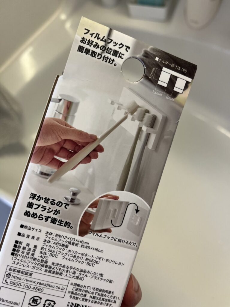 そして今回追加したのが、フィルムフックタイプの歯ブラシホルダーです。