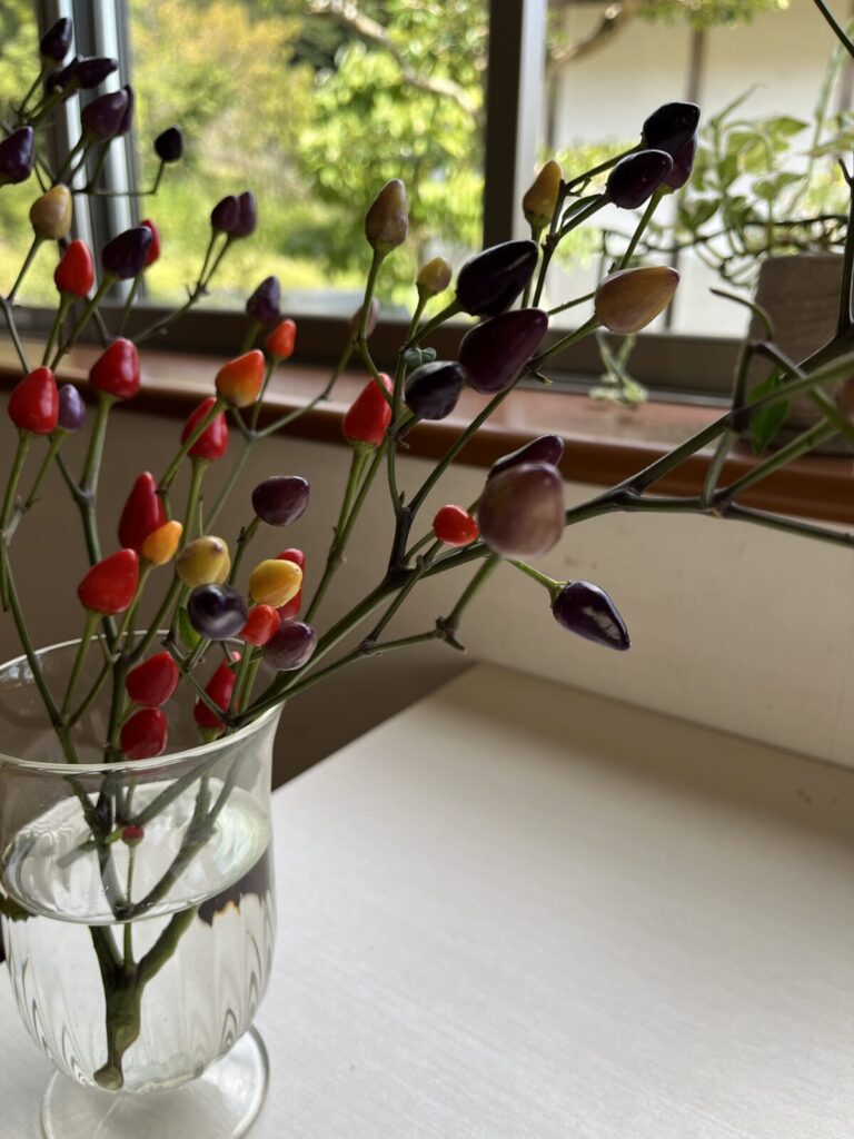 山の風景を見ると秋の装いになってきていますね。夜は満月を見て団子を食べて😋やっぱり食欲の秋ですが。 先日道の駅で思い切りカラフルな鑑賞用唐辛子を見つけて思わず買いました。 見ているだけで元気になりそうなカラーに惹かれ。かわいい❤️ お気に入り... -